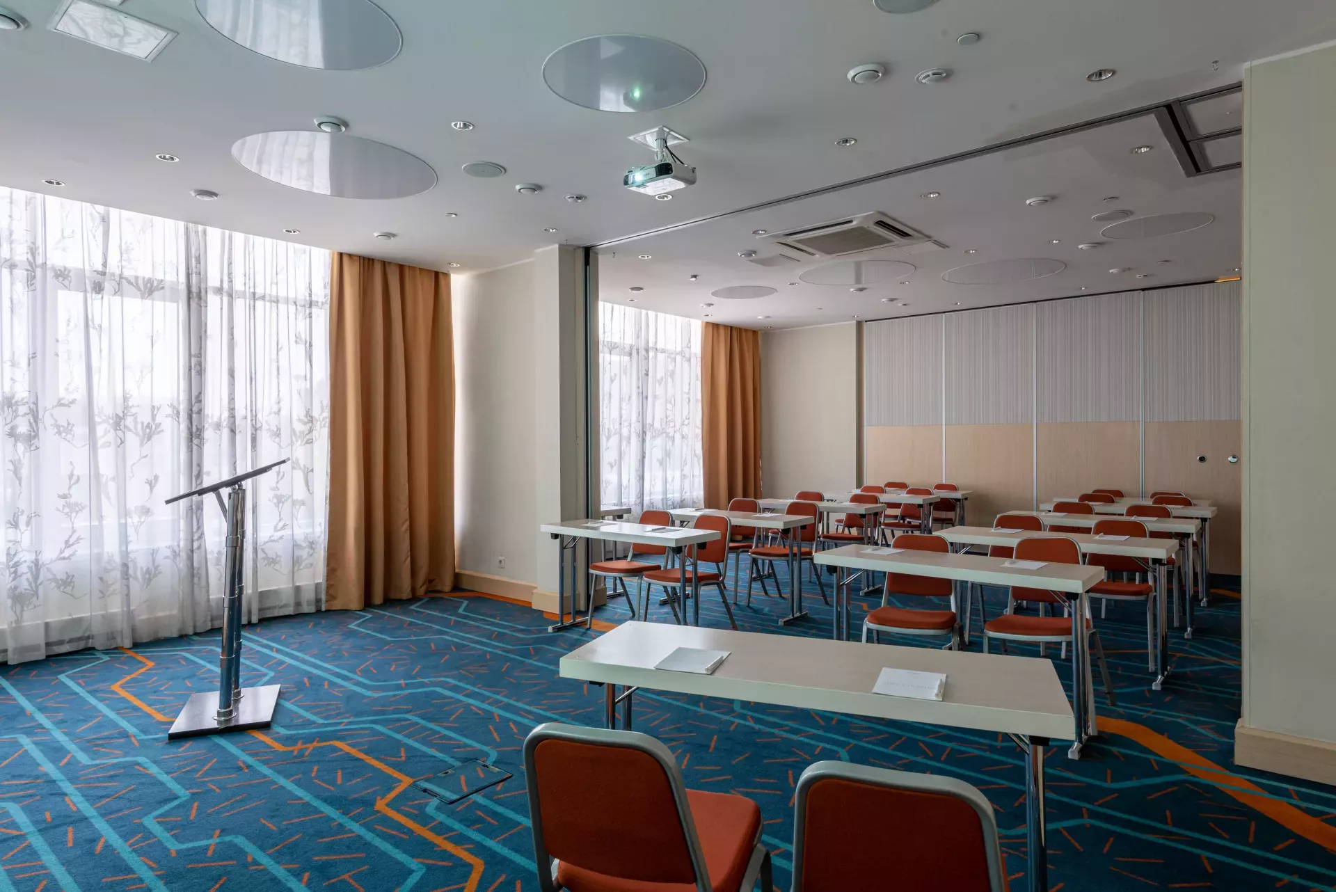 Дополнительно мы предлагаем возможность заказа кофе-брейков и ресторанного обслуживания во время проведения мероприятия, отдельная зона для кофе-брейков, размещение участников мероприятий по специальным условиям.